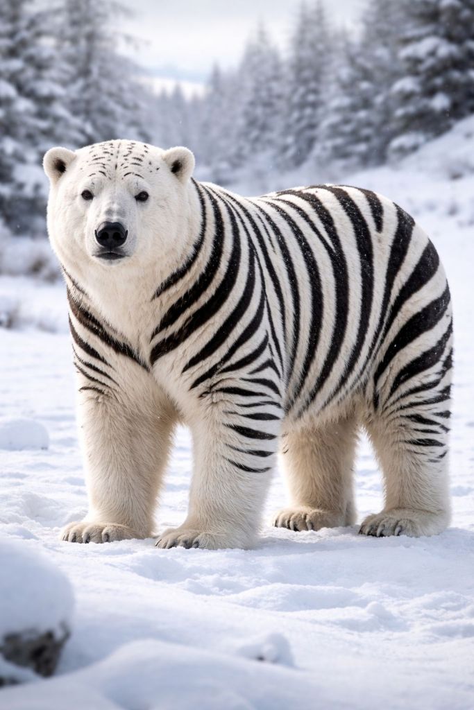 To gauge the current state of play I asked Chat GPT, on my aging, basic, smartphone what a cross between a polar bear and a zebra would look like. In less than a minute it had come up with this: